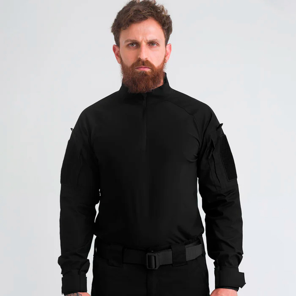 Já as mangas em ripstop SORONA® entregam elasticidade, durabilidade e liberdade de movimento, sem perder a robustez que o uso tático exige.
